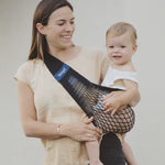 A comfy, supportive carrier sling. This product does not allow carrying a child hands free.