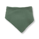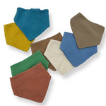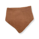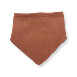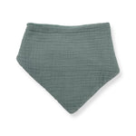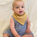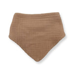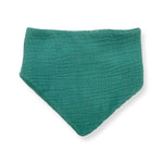 The Bandana Bib is made in a double-lined, ultra-soft, lightweight muslin cotton and cotton terry cloth and has a snap button closure for an adjustable fit.