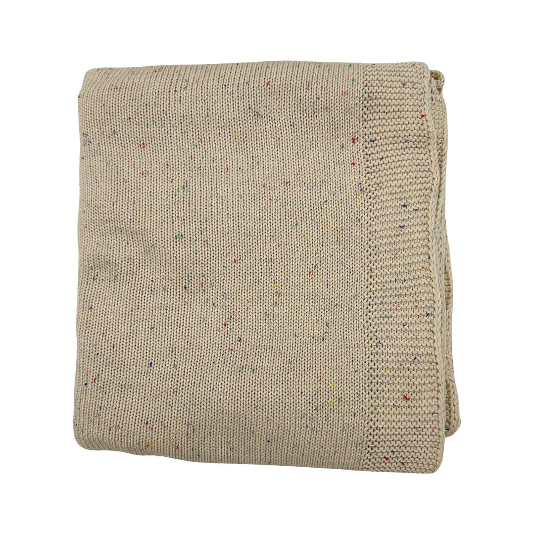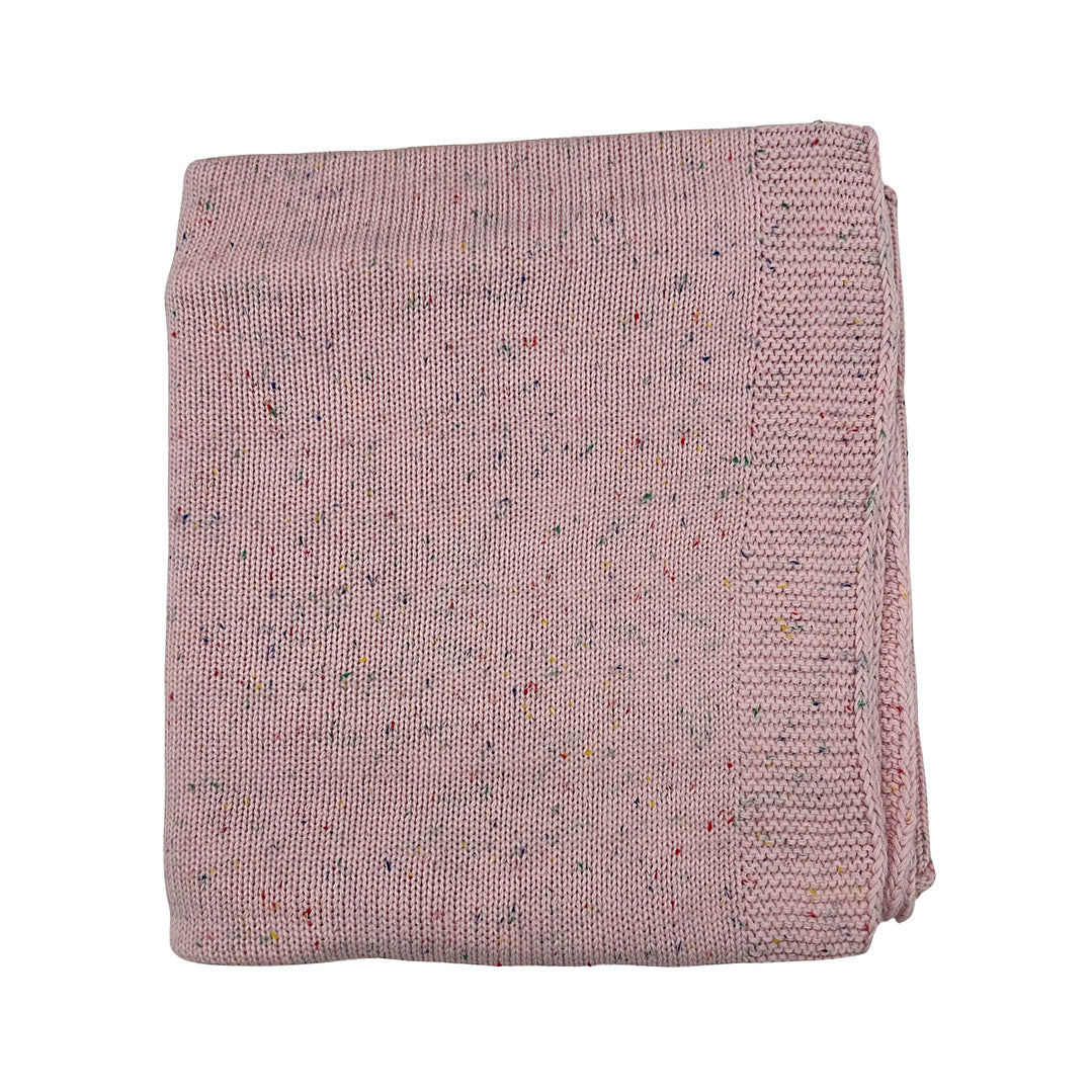 Super soft, breathable knit baby blanket with multi color speckles. Perfect for the stroller for added warmth or lounging at home.
