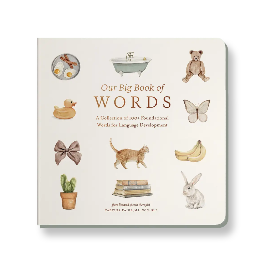 Our Big Book of First Words features charming watercolor illustrations and foundational first words that will help you build your child's vocabulary. Plus, the durable binding and board book pages will make it easy to read to your child again and again, whether at home or on the go!