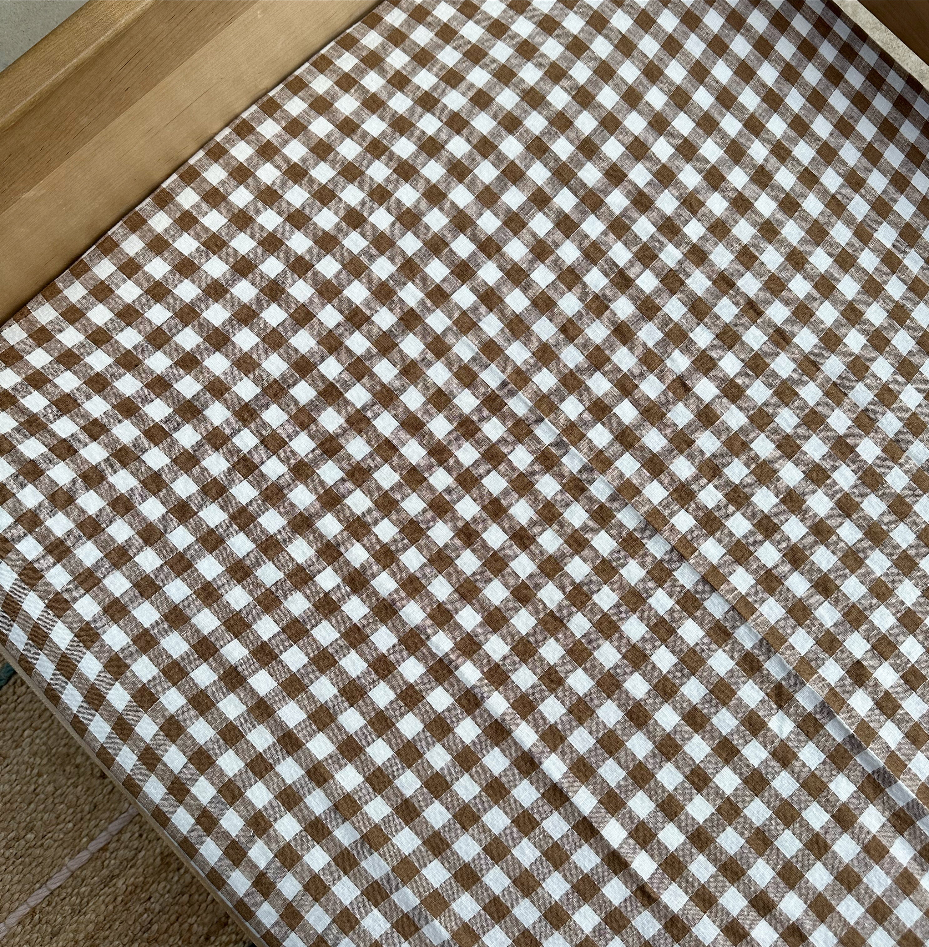 Linen Crib Fitted Sheet (Chocolate Gingham)