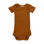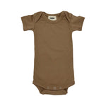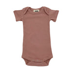 The Basic Short Sleeve Onesie has an expandable lap shoulder neckline with plenty of neck space and spacious leg openings with high positioned three snap closure.