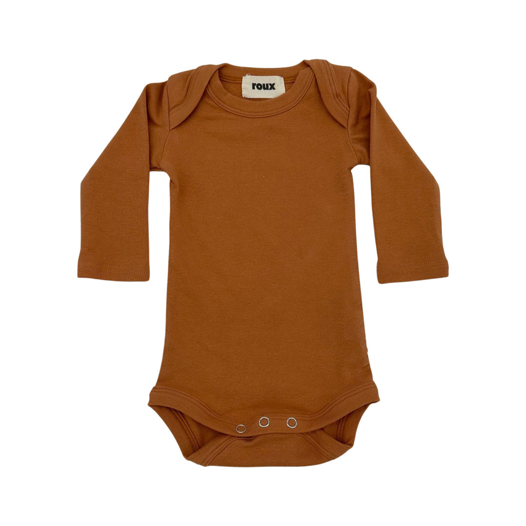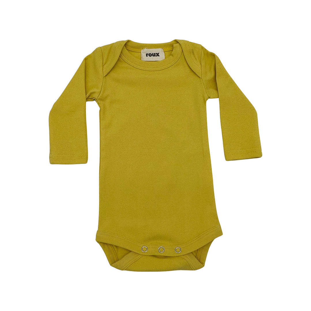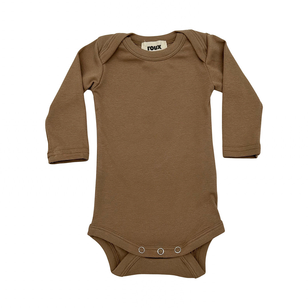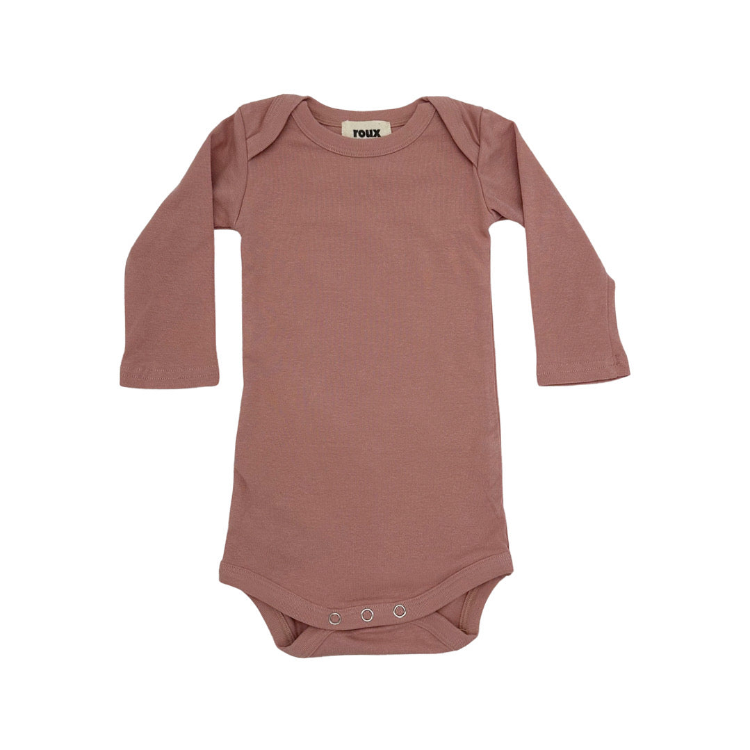 The Basic Long Sleeve Onesie has an expandable lap shoulder neckline with plenty of neck space and spacious leg openings with high positioned three snap closure.