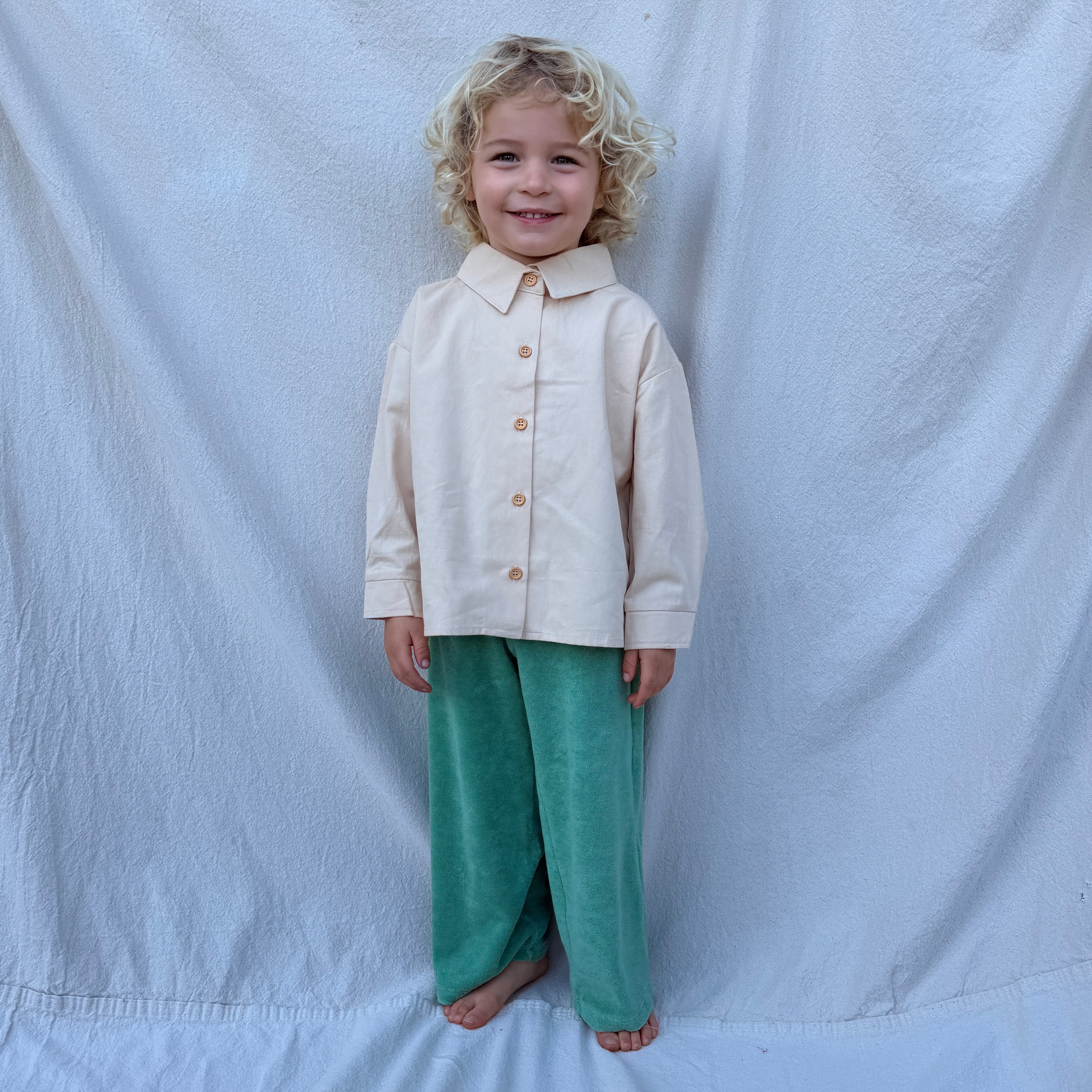 The Romy Terrycloth Pant is a wide leg pull on pant with elastic waistband. Mix and match with your favorite Drake Tee or Nora Tank.